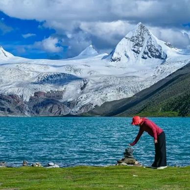 OCTOBER 13, 2026: In the morning drive over the Gampala pass (4,790m) to catch a glimpse of Yamdrok Tso (4,400m). The Yamdrok Lake is surrounded by many snow-capped mountains and in the distance you can have spectacular views of Holy Mount Nyenchen Khangsar (7,191m), the highest mountain near Lhasa. Continue to explore the lakeshore from various viewpoints, and at the end of the lake, you could visit a local family in the village and have lunch with the locals. Next, you will pass and enjoy the Korola Glacier on the roadside. It is the largest glacier in Tibet. As you see the ice tongue of the glacier climb the entire mountain, you will feel the magical power of nature.
